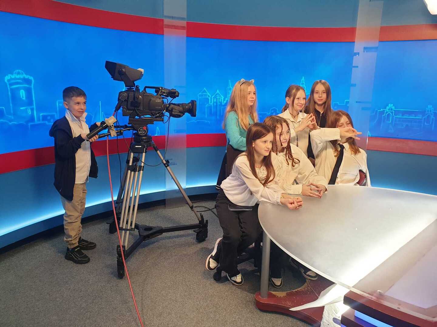 W dniu 14.11.2023 klasa V wybrała się wraz z wychowawcą oraz pedagogiem Panią Natalią Zalewską na wycieczkę do siedziby TVP Olsztyn oraz do olsztyńskiego Radia. Celem wycieczki było zapoznanie uczniów z pracą pracowników radia oraz telewizji. Podczas wycieczki zwiedziliśmy pokój zwany Newsroom gdzie spotykają się reporterzy i redaktorzy aby przygotować kolejne wydania programów. Każdy z uczniów miał możliwość zasiąść w studiu telewizyjnym i przez chwilę poczuć się jak prezenter telewizyjny lub wczuć się w rolę operatora kamery. W Radiu Olsztyn odwiedziliśmy studio nagraniowe i mieliśmy okazję obserwować realizację audycji radiowej. Świetnie się bawiliśmy. Dziękujemy Panu Romanowi Bodnarowi z TVP Olsztyn oraz Panu Dominikowi Chowaniec z Radia Olsztyn za zapoznanie nas ze swoją pracą.