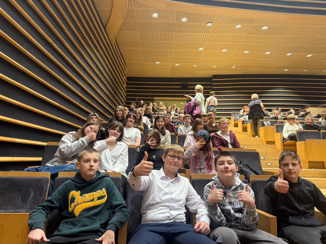 W ramach projektu „Wyjścia z klasą” organizowanego przez Starostwo Powiatowe, uczniowie klasy VI uczestniczyli w wyjątkowym koncercie pt. „Muzyka filmowa dla młodzieży”, który odbył się w Filharmonii. Była to niezwykła podróż przez świat dźwięków znanych z najpopularniejszych filmów – pełna emocji, uśmiechu i niezapomnianych wrażeń. Uczniowie mieli okazję posłuchać znakomitych wykonań oraz przekonać się, jak wielką rolę odgrywa muzyka w budowaniu filmowych historii. Dziękujemy organizatorom za możliwość udziału w tym wartościowym wydarzeniu kulturalnym. Takie spotkania rozwijają wrażliwość artystyczną i pokazują, że nauka może odbywać się również poza murami szkoły.