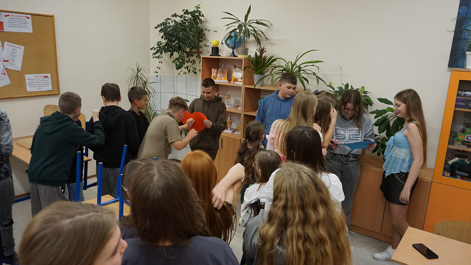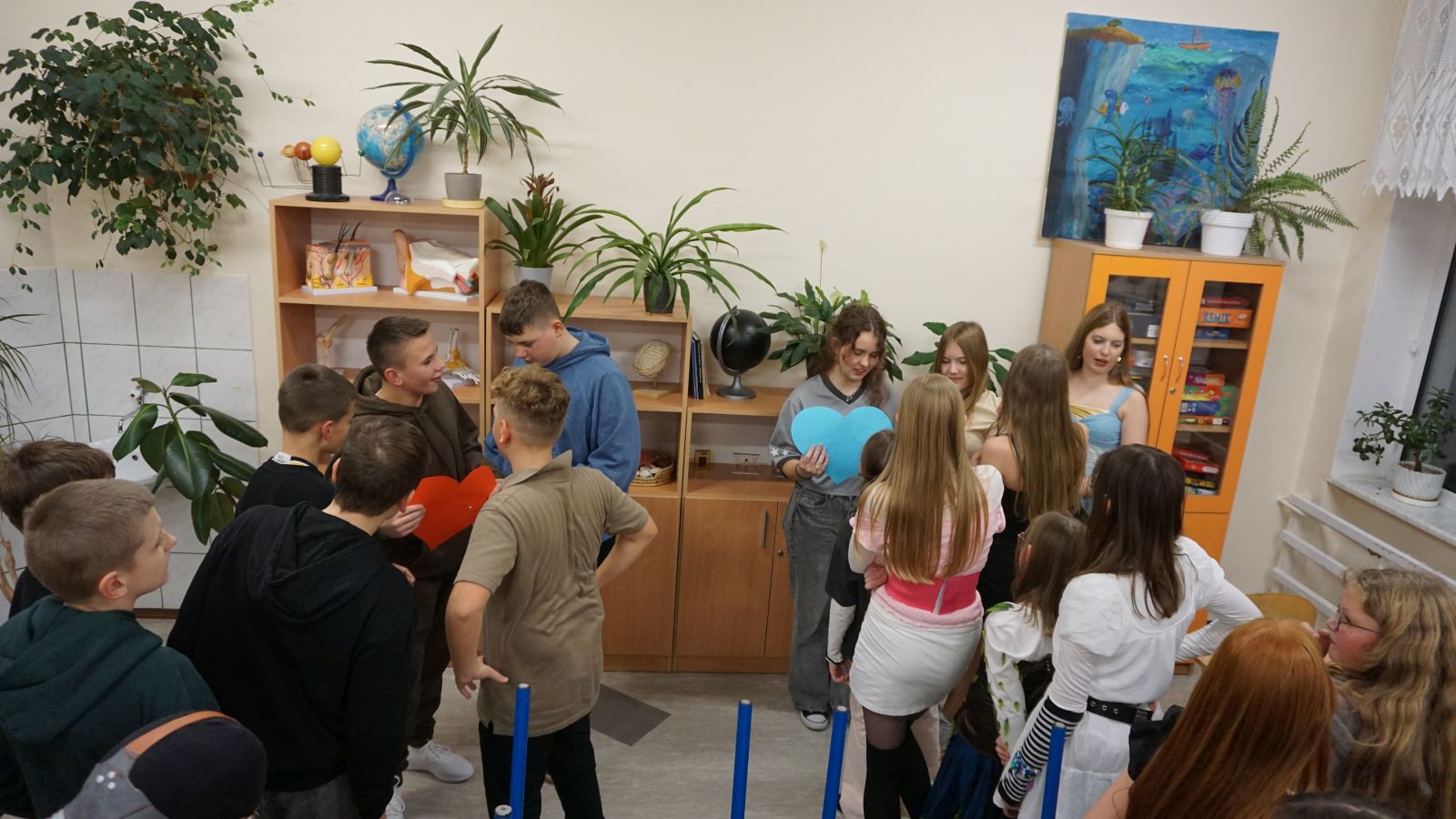 Podczas tegorocznej zabawy nasi uczniowie uczestniczyli w laniu wosku przez dziurkę od klucza, losowaniu przyszłych zawodów i przekłuwaniu serc z imionami przyszłych partnerów. Na koniec wzięli także udział w pełnym emocji wyścigu butów.