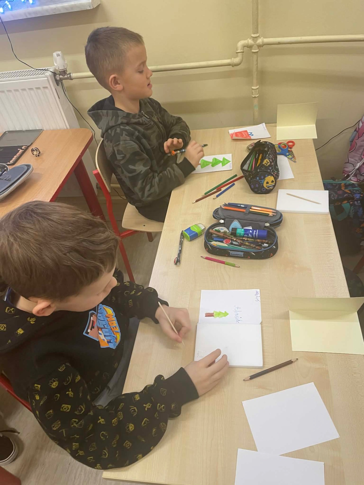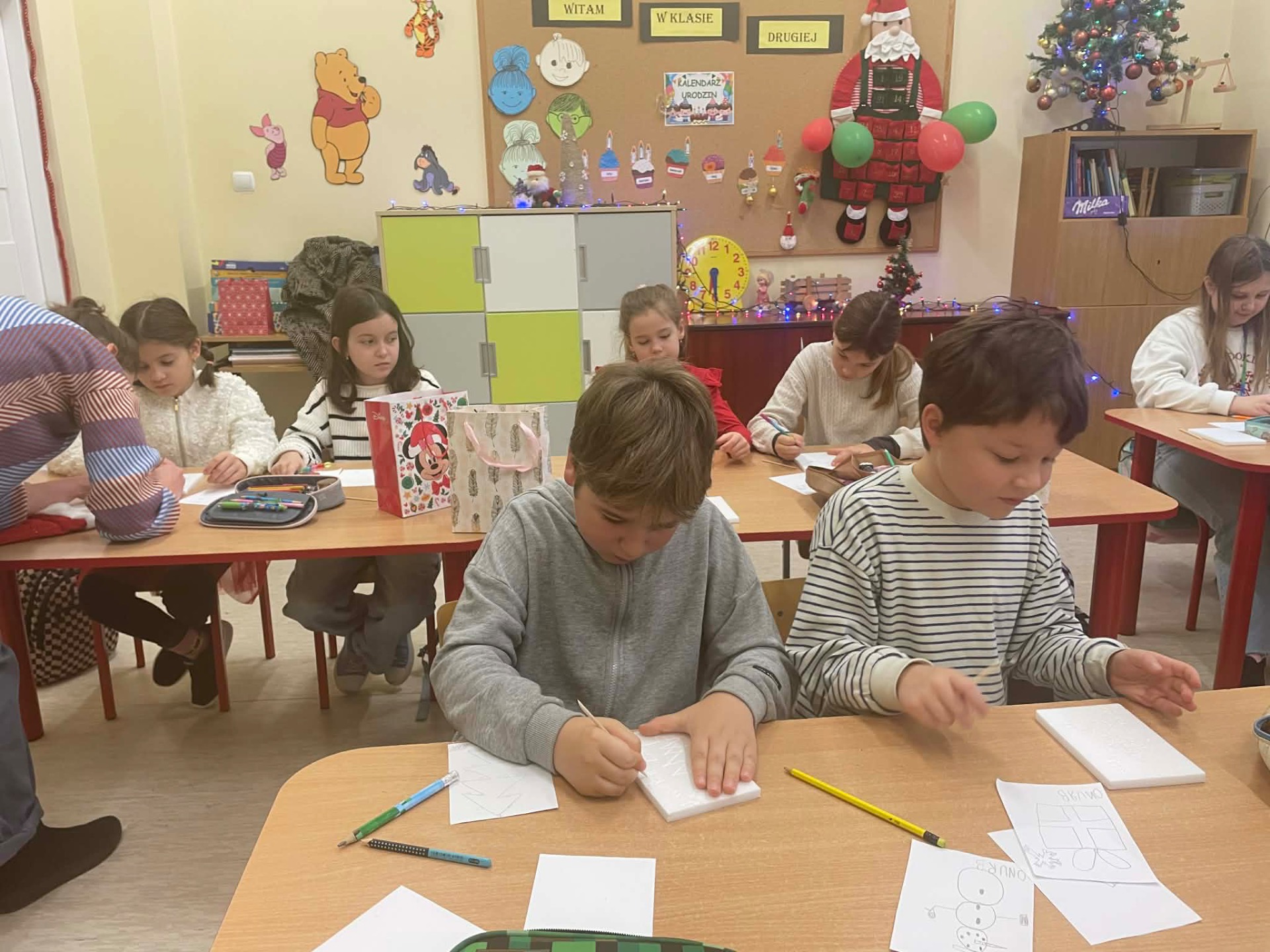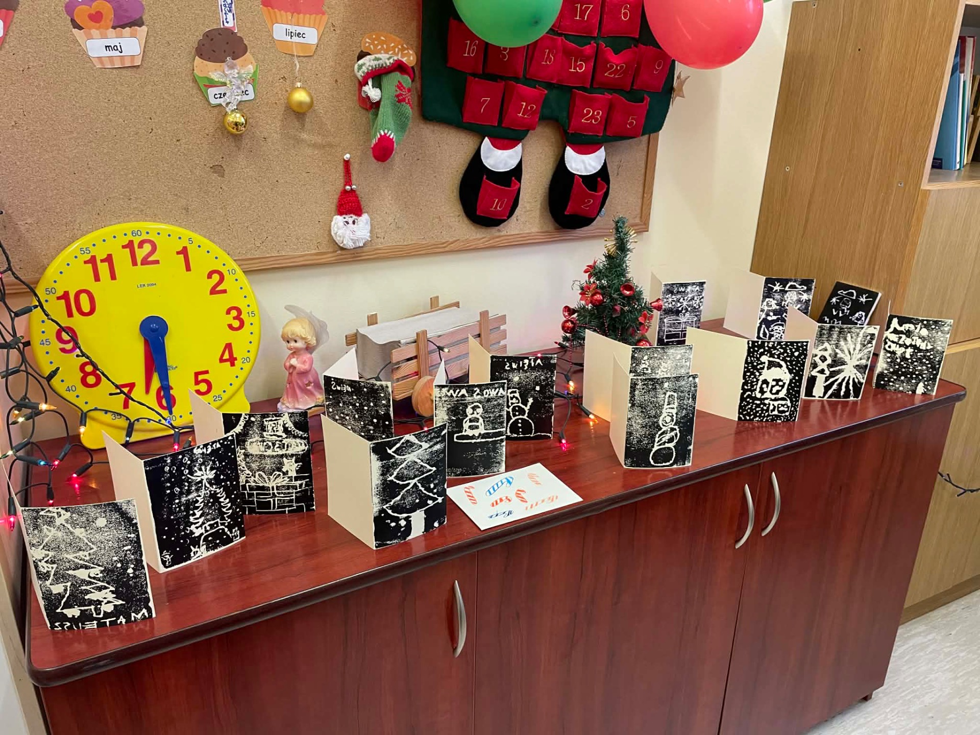 Dzisiaj tj. 8 grudnia klasa IIa pod czujnym okiem p. Morawskiej- Omaleckiej- mamy Bruna, wykonała świąteczne kartki. Każdy zrobił 3 projekty spośród których wybrał jeden- najciekawszy. Ten najlepszy zaś wyrysował na matrycy, która została pokryta farbą drukarską, a następnie odciśnięta na ozdobnym papierze. Te małe dzieła sztuki w najbliższych dniach wypełnią się ciepłymi życzeniami tworzonymi dla kogoś bardzo bliskiego.